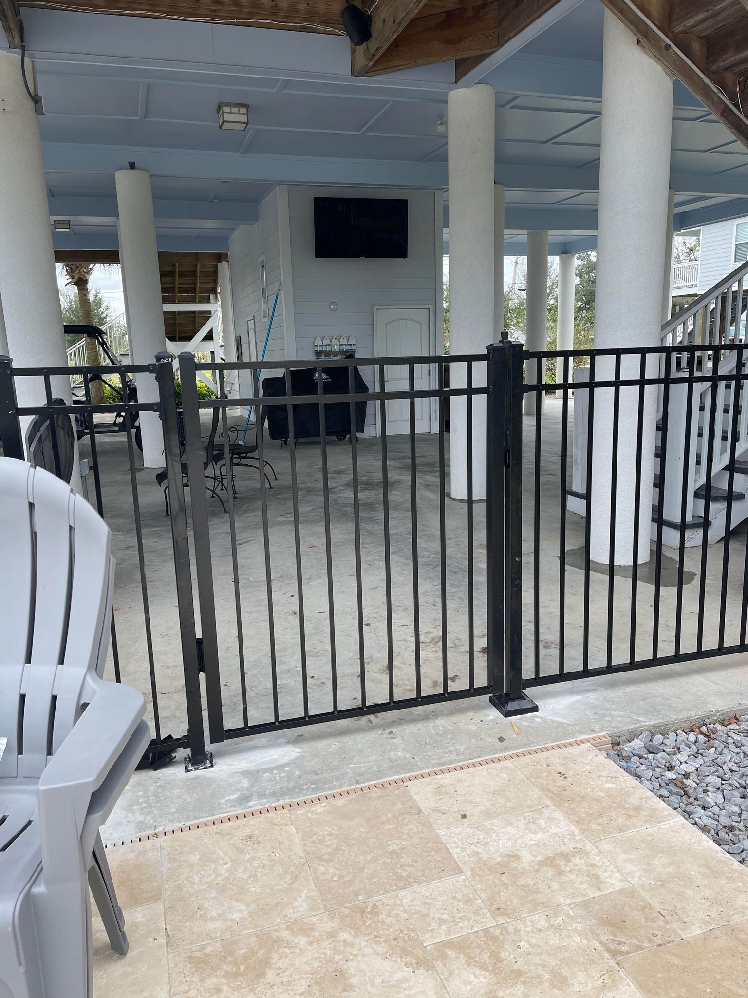 Tomorrow .. they finish the fence. I normally hate fences. In Texas ... not required on my property. But with the pool in MS ... a requirement in the city limits. So... went with an aluminum metal one that is perfect. And .. it keeps Peanut out of trouble.
