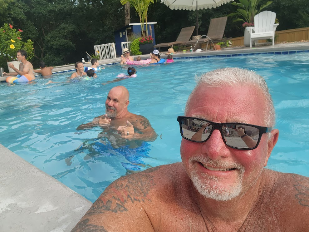 My plan is to head up for a few hours then back to be with all the CVMA folks. Sounds great in theory .. but... things are about to change up a lil. I've had to pick up some shorts for the pool, Jesse has everything else (beer!) .. so .. rolling North! I pull up first around 1300 and by the time the day is done, he and Daniela will have a full house..... five other couples, full compliment of kids with each family and ... a great time. Jesse knocks out a killer brisket and two spatched chickens. Food is great, beer is cold, kids are mannered and having a blast, and some great conversations among the adults. I plan on heading back around 1800 but a quick look at my watch tells me it's 8pm ... and with all the beers and we've been sipping some bourbons/whiskey ... my ass ain't going nowhere. It'll be 2am before we quit telling lies and stories and finally pull the plug. What an awesome day.